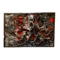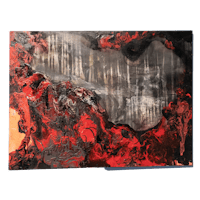a gold framed painting of a red and green painting