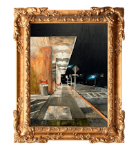 a painting of a street scene in a gold frame