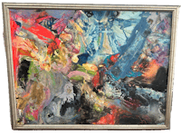 an abstract painting in a gold frame