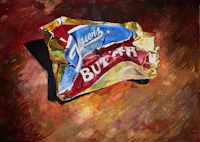 a painting of a cupcake on a plate