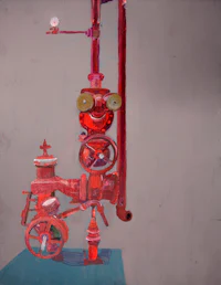 a painting of a gas station at night