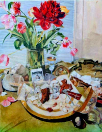 a painting of a truck in front of a sign