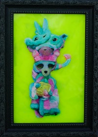 a framed piece of art with a colorful drawing on it