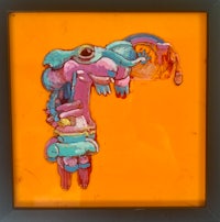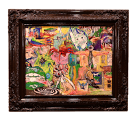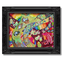 an abstract painting in a gold frame