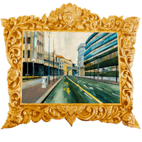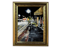 a painting of a street scene in a gold frame