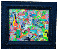a painting of a clown in a black frame