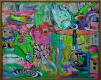 a colorful painting in a black frame